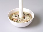 Artist Seung Yul Oh recreates common Korean noodle dishes, but with a spectacular twist. Using synthetic resin, a pair of chopsticks float 12-feet-high, with dangling noodles flowing all the way down into the bowl.